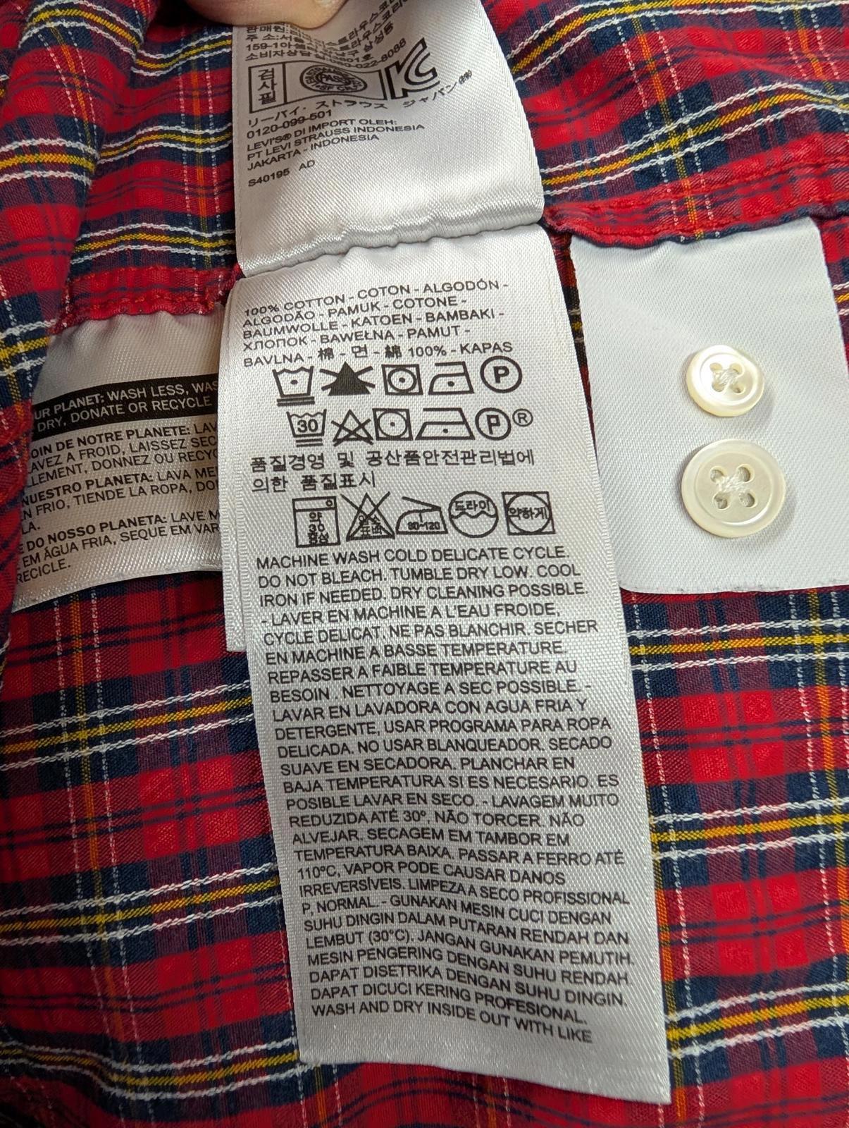 Vintage Levis Supima Cotton Shirt XL Men L/S Red Blue Check Button Collar Pocket