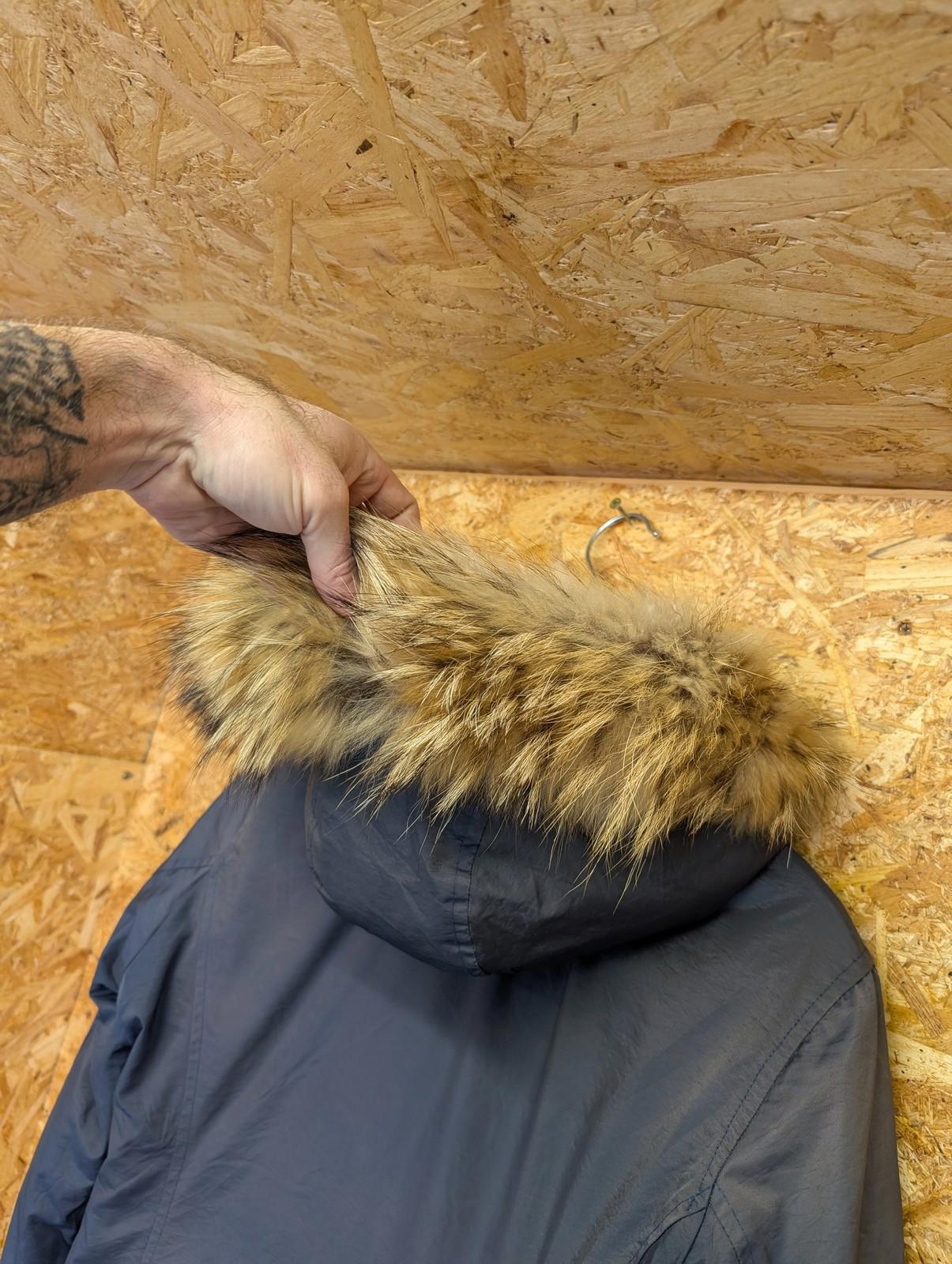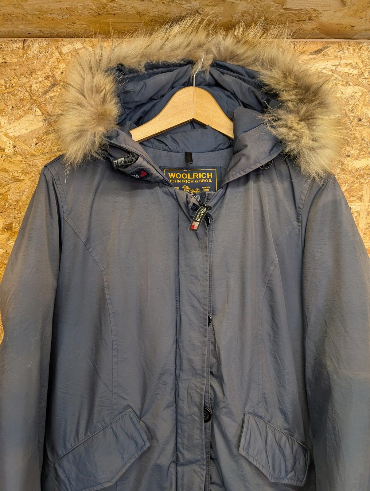 Woolrich Ramar Arctic Parka Medium Women Fur Trim Hooded Jacket Blue Winter Warm