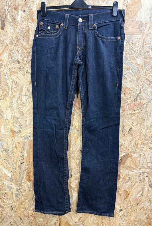 True Religion Jeans W31 L34 Men Straight Leg Navy Blue Denim Zip Fly