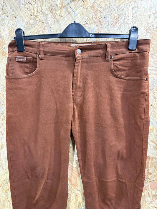 Wrangler Texas Stretch Jeans W34 L32 Men Straight Fit Brown Denim Zip Fly