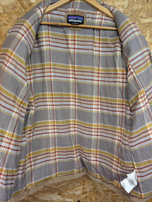 Patagonia Beige Cord Fjord Coat Large Women Puffer Plaid Check Liner Warm Winter